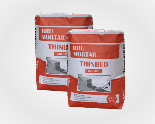 Semen instan BRU MORTAR THINBED ( BRU -888 ) adalah semen instan berkualitas tinggi yang terbuat dari campuran semen, pasir silika, filler dan adiktif dengan komposisi penimbangan yang sangat akurat.