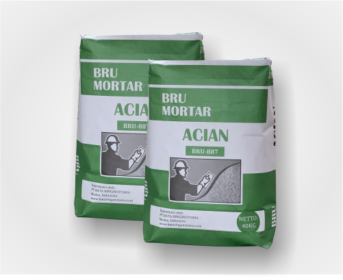 Semen instan BRU MORTAR ACIAN ( BRU-887 ) adalag semen instan berkualitas tinggi yang terbuat dari campuran semen pasir silika, filler dan adiktif dengan komposisi penimbangan yang sangat akurat.